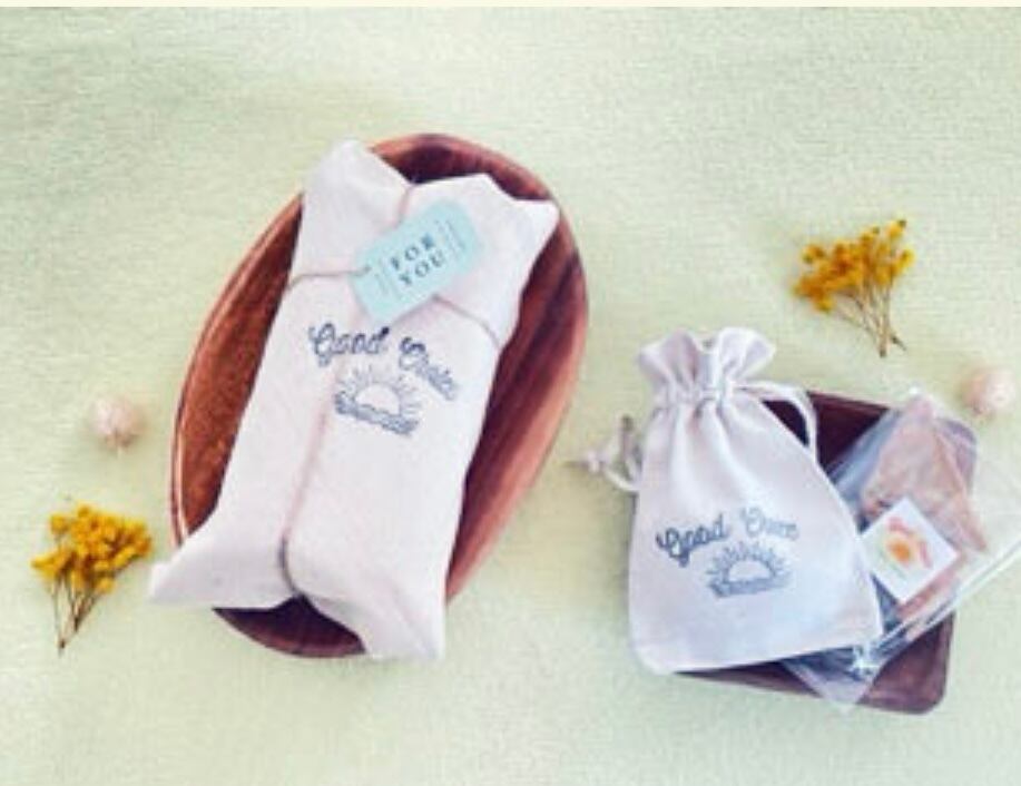 こちらも選択していただく事で簡易包装ではなく、プレゼント用に商品のサイズに合わせてナチュラルコットンの巾着に入れてラッピング梱包させていただきます♡