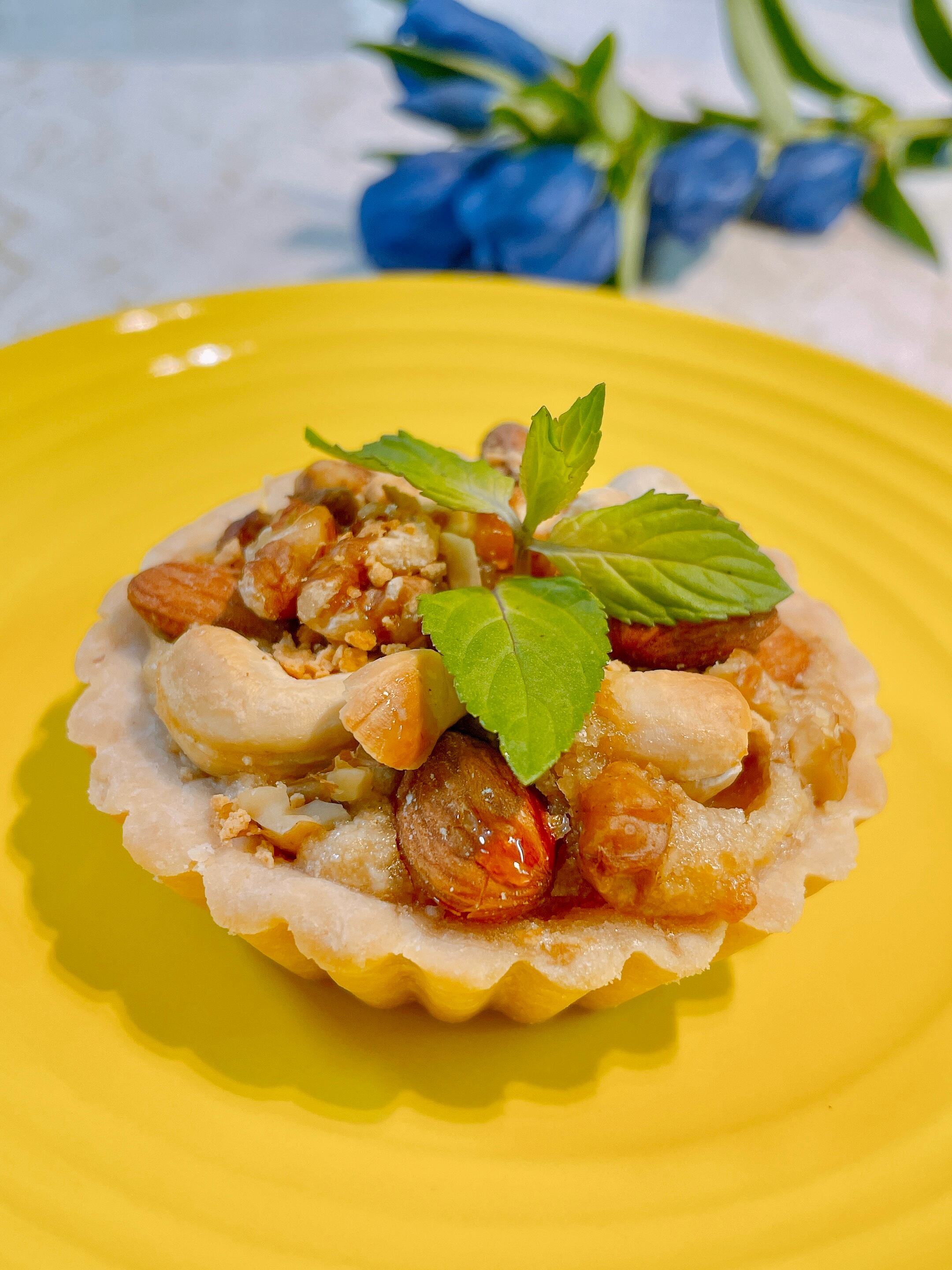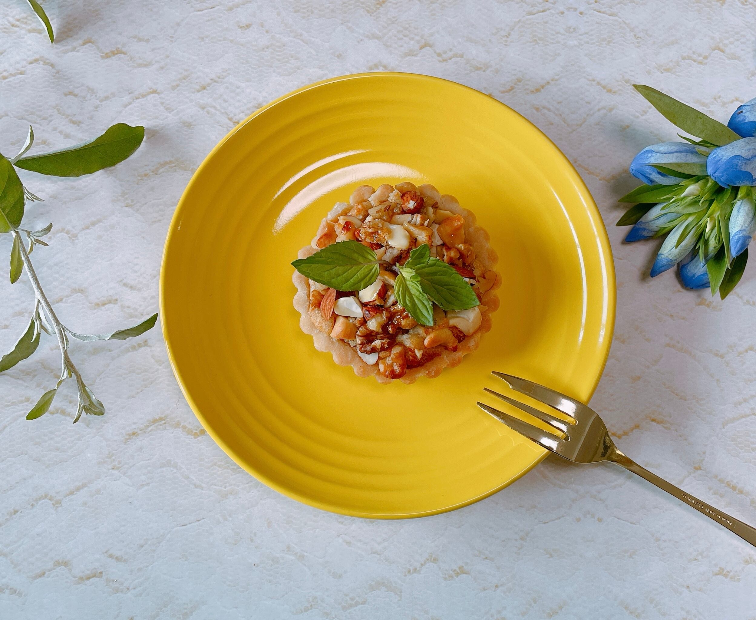 ⚫︎タルト生地を玄米粉で作り、中に混ぜ込んであるアーモンドクリームは有機のお豆腐を使用し、甘さはメープルシロップでヘルシーに仕上げた風味豊かなタルトです。