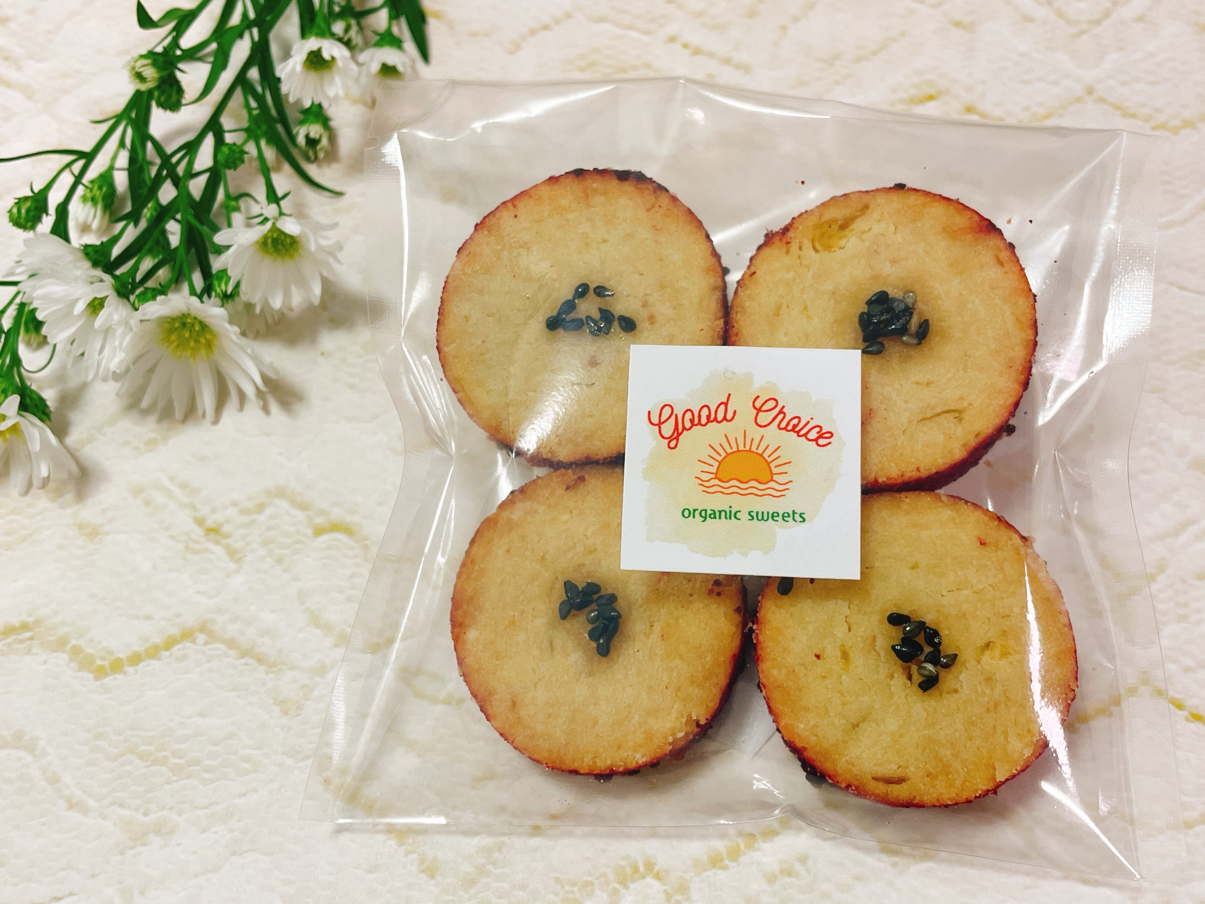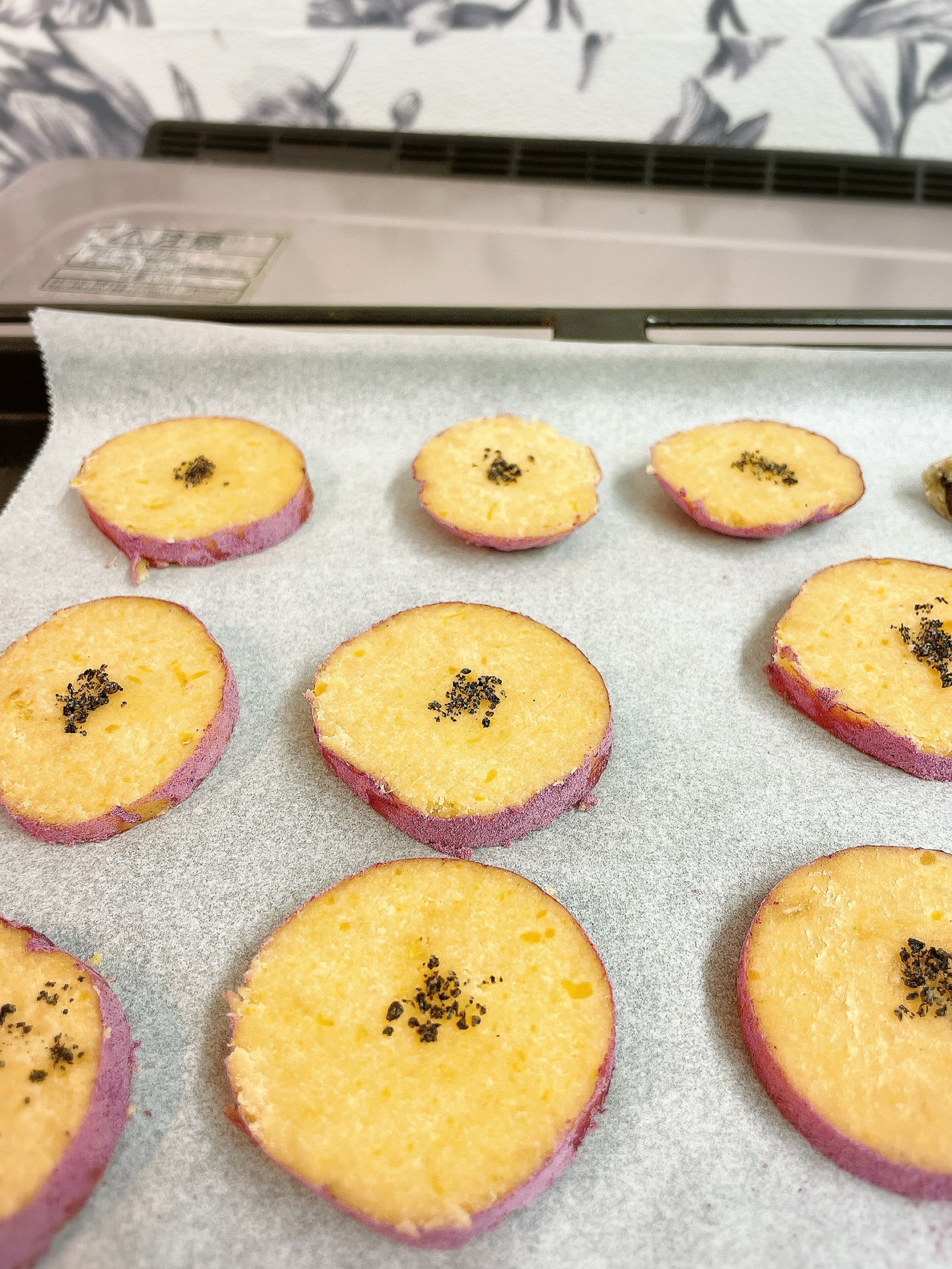 ⚫︎生地にたっぷり有機のサツマイモを入れ込み、有機のビーツパウダーと紫イモパウダーでサツマイモの皮に見立てた可愛いクッキー。
