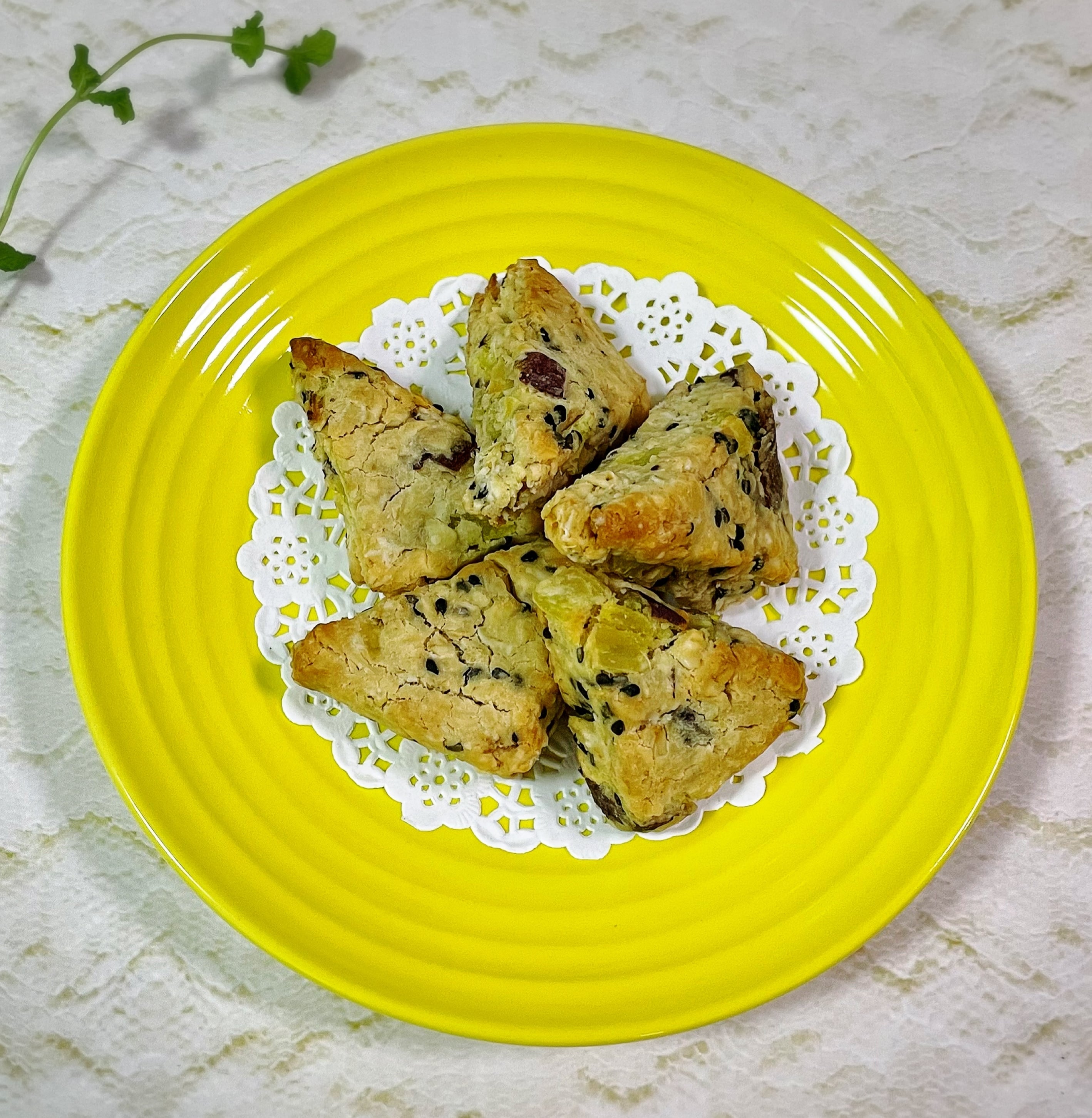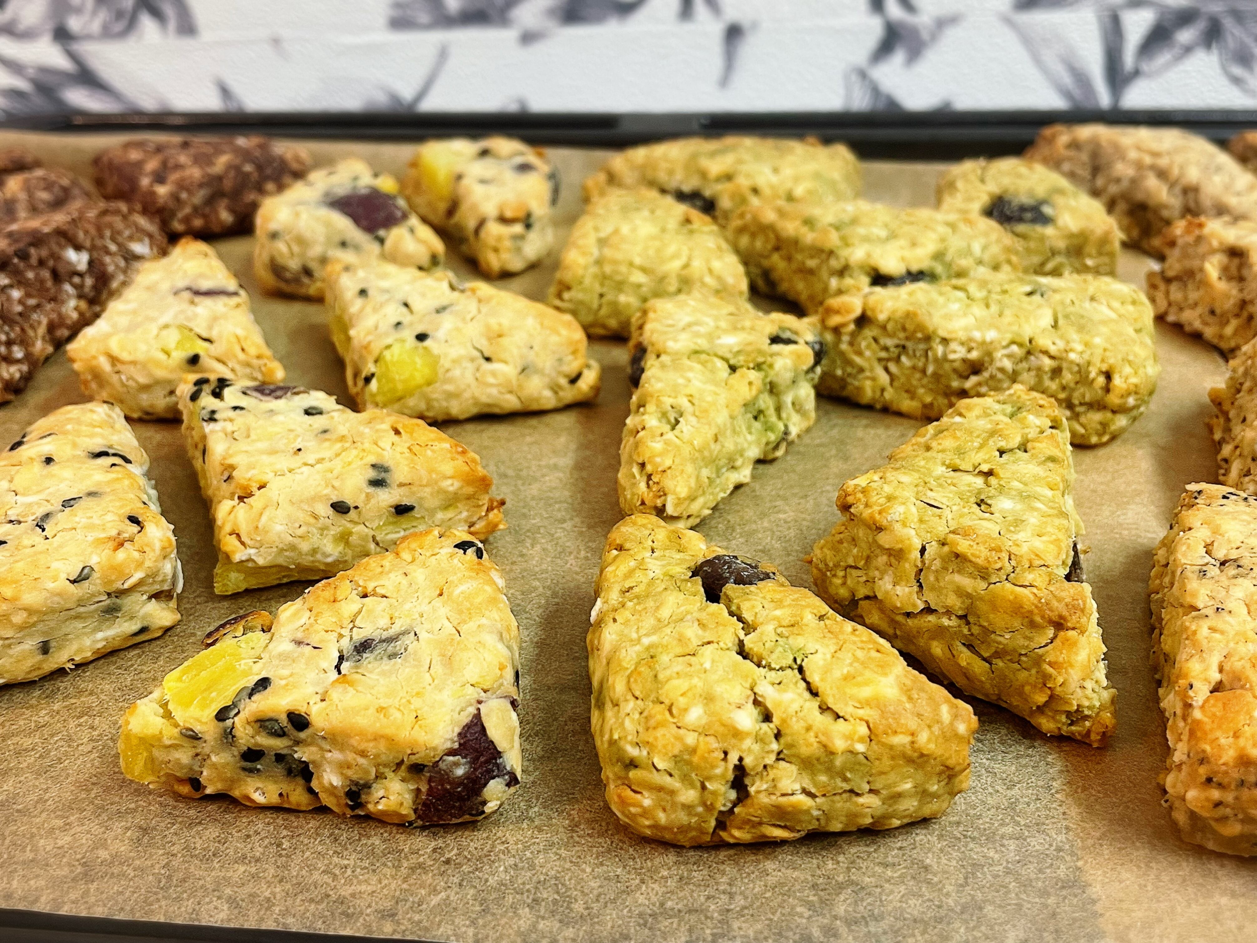 ⚫︎オートミールと玄米粉のスコーン生地にサツマイモと黒ゴマを練り込んだスコーンです。