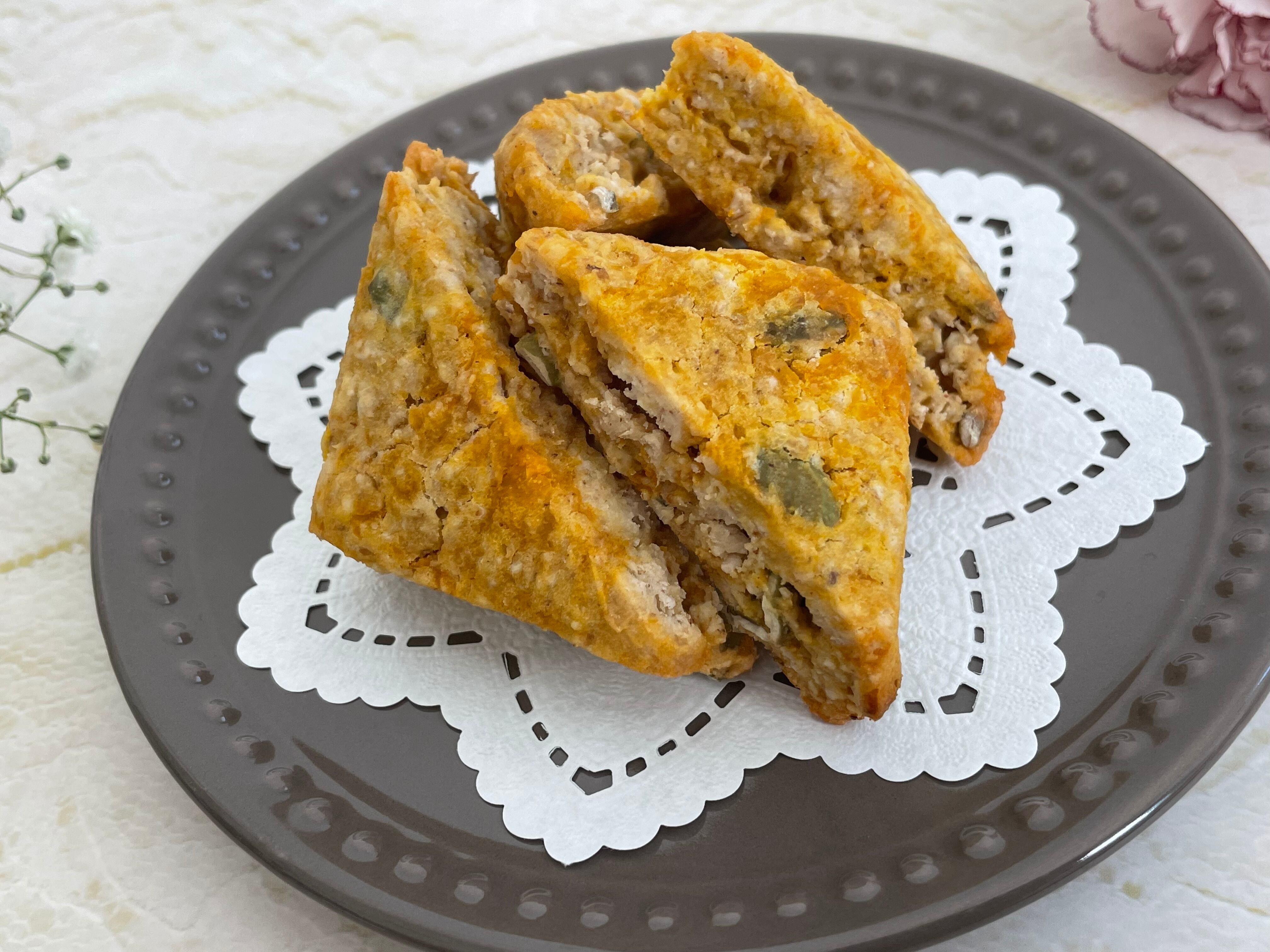 ⚫︎オートミールと玄米粉のスコーン生地にカボチャとパンプキンシード・シナモンを練り込んだスコーンです。