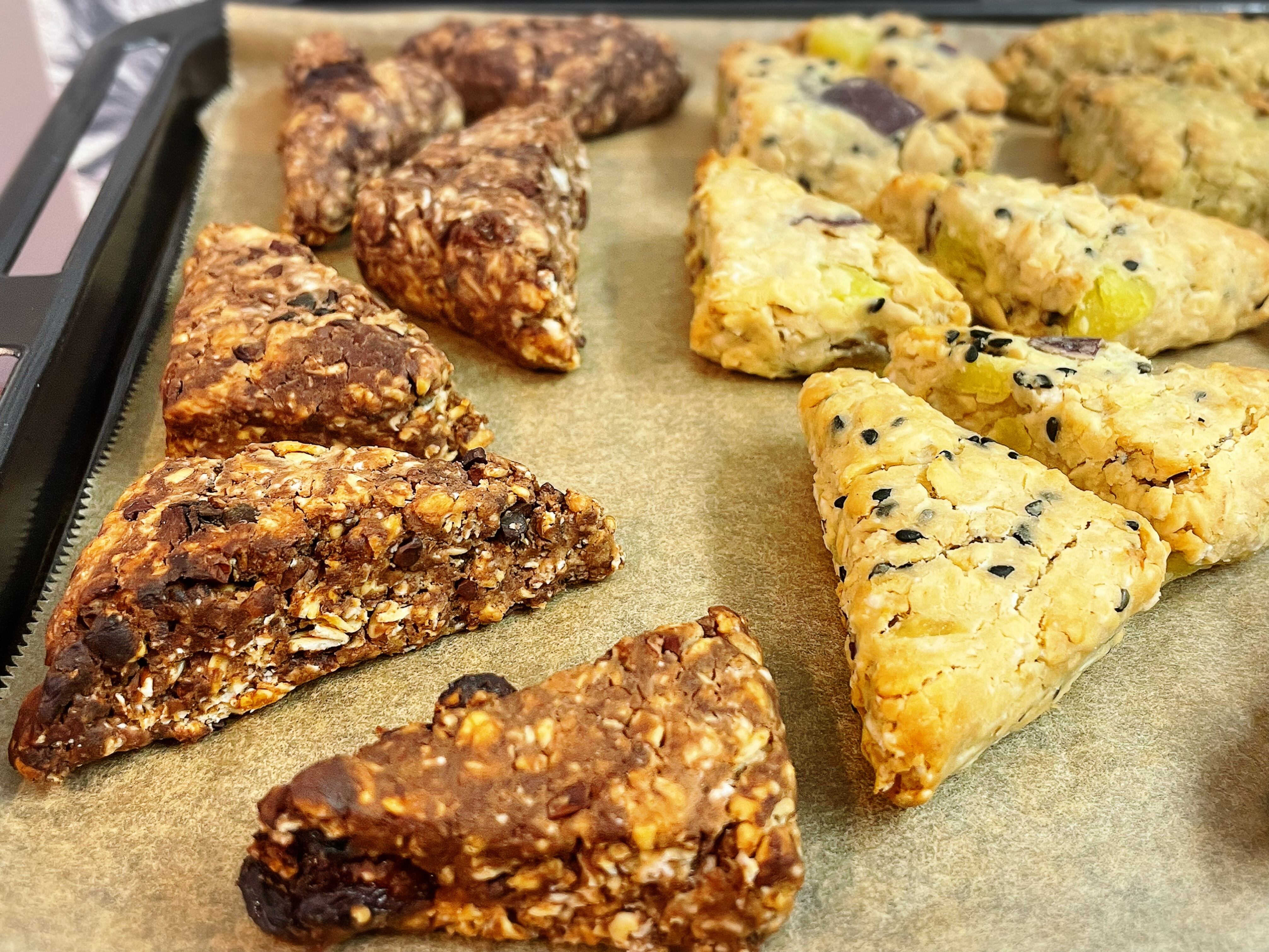 ⚫︎オートミールと玄米粉のスコーン生地にココアパウダーとカカオニブ・レーズンを練り込んだチョコ風味のスコーンです。